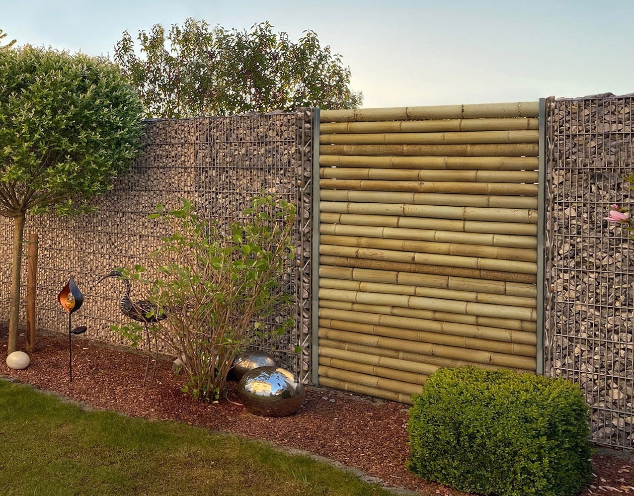 Wir weisen darauf hin, dass die genannten Produkteigenschaften (Farbe, Form, Dimension, Reinheit, Beschaffenheit, Rissbildung) bambusspezifisch und natürlich sind und bilden keinen Reklamationsgrund. Die Bilder auf dieser Webseite sind Beispiele, sie sind nicht verbindlich für Ihre Bestellung und bilden keine zugesicherten Eigenschaften ab.Bambusrohre sind durch ihre Wuchsform bedingt schwach bis stark konisch und dick bis dünnwandig, sie sind von Natur aus nicht exakt gerade. Bambusrohre besitzen keine schützende Rinde und können ernte- und transportbedingt Beschädigungen aufweisen, auch durch Begradigungen können teilweise Brandflecke an den Rohren entstehen. Der Bambus wird getrocknet und teilweise behandelt, dennoch können Verunreinigungen und oberflächliche Schimmelbildung nicht komplett ausgeschlossen werden.