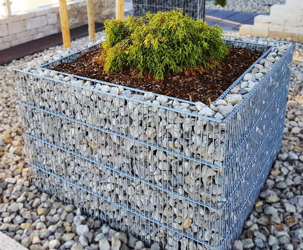 Aufgrund der kleinen Maschenweite (25 x 200 Millimeter) können Sie das Hochbeet mit Natursteinen, Glasschotter oder anderen Naturmaterialien ansprechend befüllen.