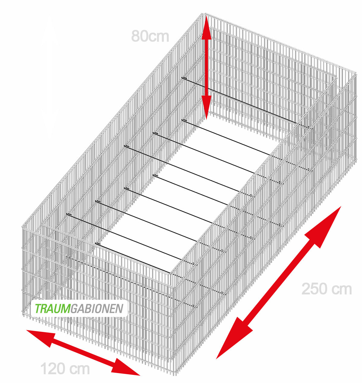 Lieferumfang: 8 Gittermatten (Maschenweite 25/200), 24 Klemmen, 22 / 38 Abstandhalter; Füllmaterial nicht enthalten.