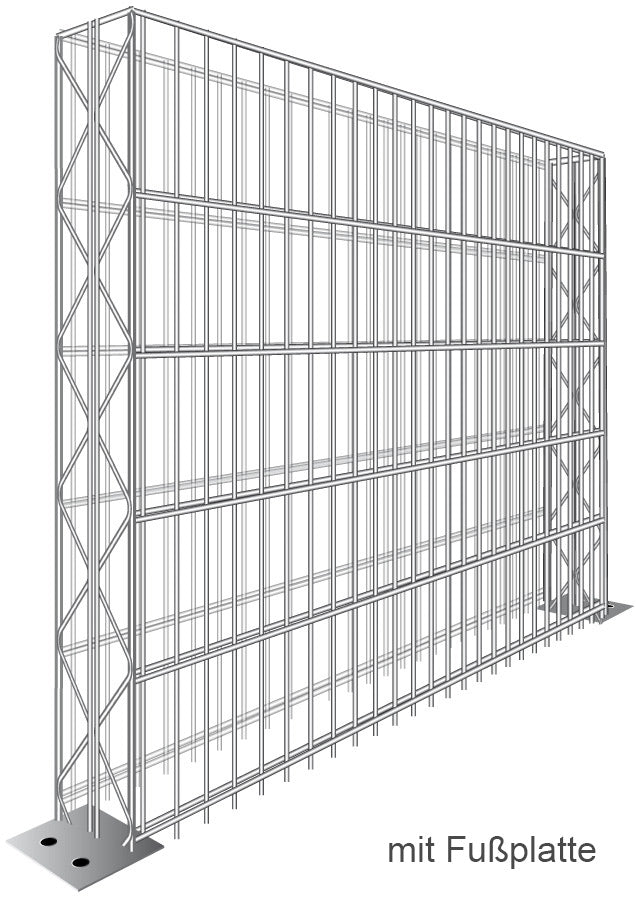 Die Standardausführung der verzinkten Gabionenkörbe zur Einbindung in Ortbetonfundamente in ausreichender Länge gedacht.Zur Montage auf bestehende Betonuntergründe ist der Gabionenkorb mit Fußplatten erhältlich (bis 180 cm Höhe). Sie sollten das Fundament dabei stets frostsicher nach statischen Anforderungen gründen.