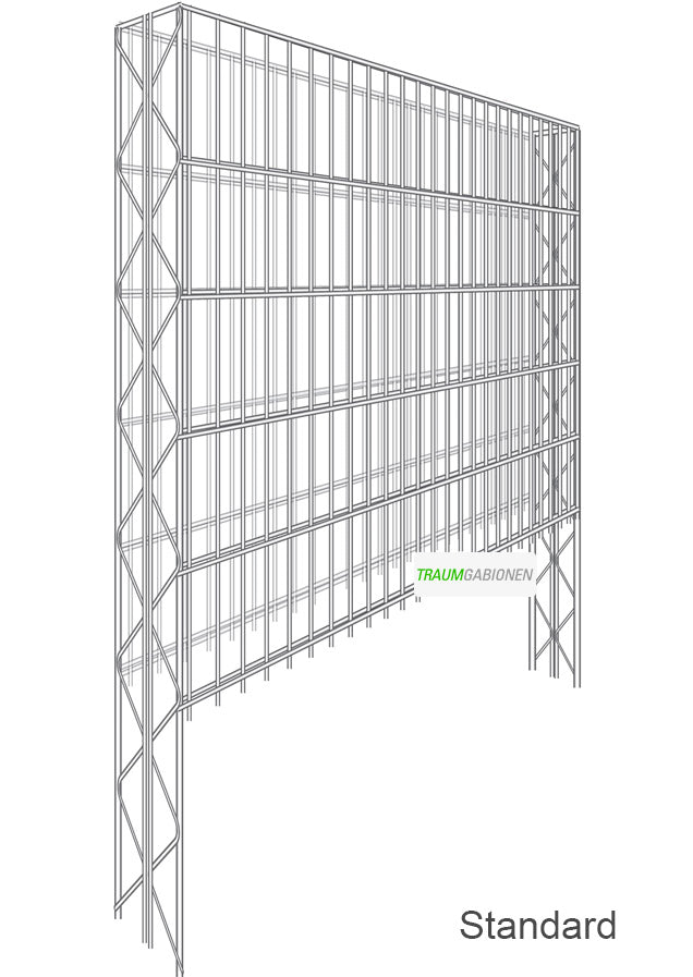 Die Drahtkörbe bestehen aus feuerverzinktem Stahl, weshalb sie sich durch eine enorme Festigkeit und lange Haltbarkeit auszeichnen. Das Drahtgeflecht ist von Weitem kaum sichtbar, weil es mit der Füllung zu verschmelzen scheint.